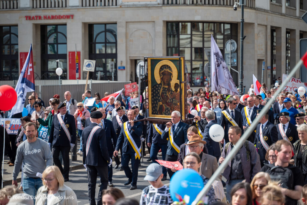 Manifestacja odbywała się pod hasłem „Wiara i Wierność 966–2026”, co nawiązywało do 1060 rocznicy Chrztu Polski.